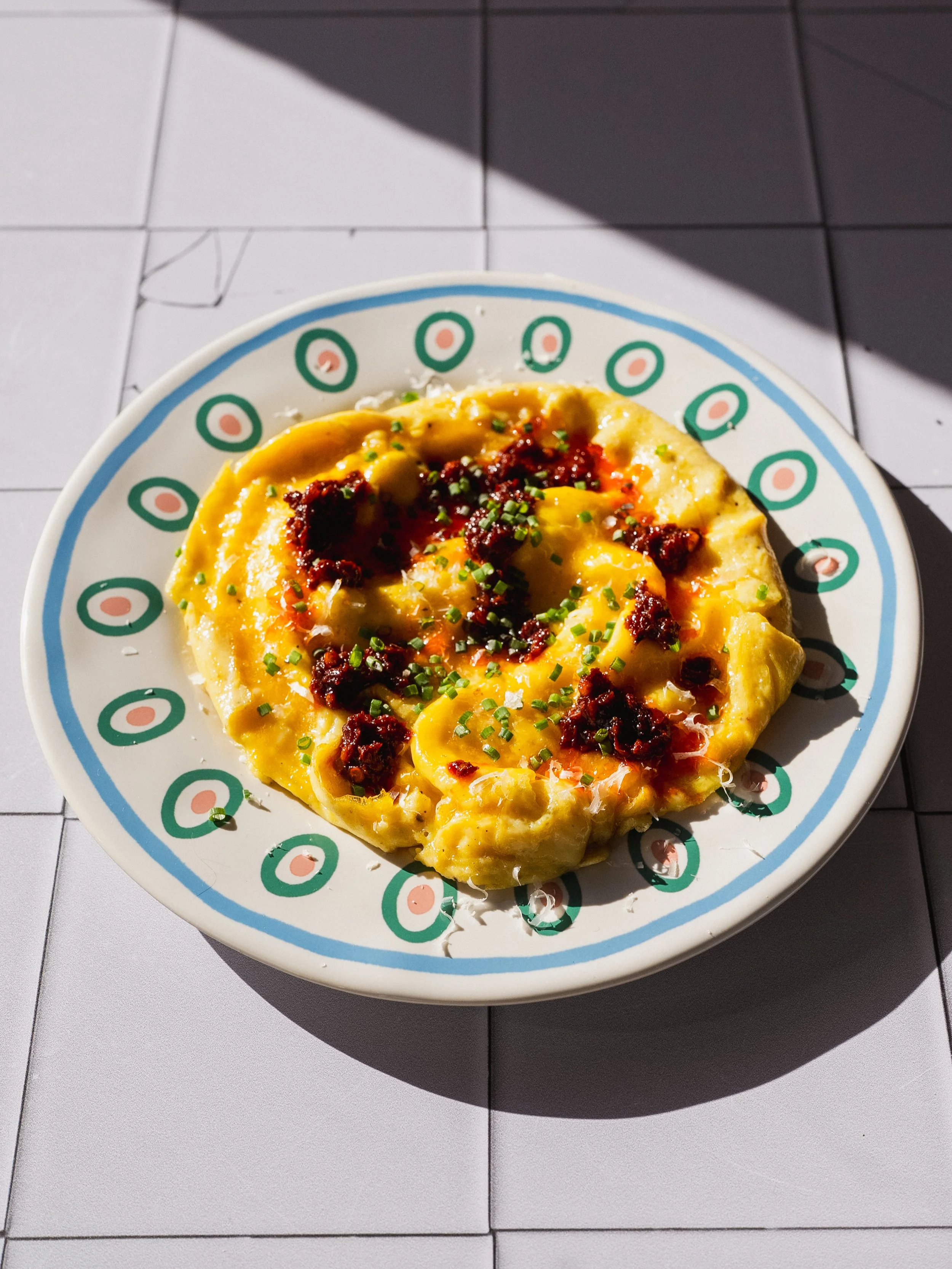 Rose egg, czyli kremowy omlet w kształcie róży z ndują, to absolutnie śniadanie, które zniewala. Łączy w sobie kremowość jajecznicy z pikantną włoską kiełbasą ndują. Nduja to miękka, smarowna kiełbasa z południa Włoch, bardzo aromatyczna i wyraźnie pikantna, która pod wpływem ciepła zamienia się w intensywny, paprykowy sos. Do tego odrobina parmezanu, szczypiorek i dobre pieczywo. Na samą myśl o tym śniadaniu można dostać ślinotoku. Koniecznie przetestujcie.